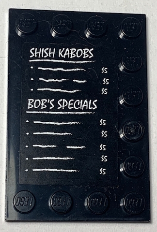 Tile, Modified 4 x 6 with Studs on Edges with 'SHISH KABOBS' and 'BOB'S SPECIALS' Pattern (Sticker) - Set 70812