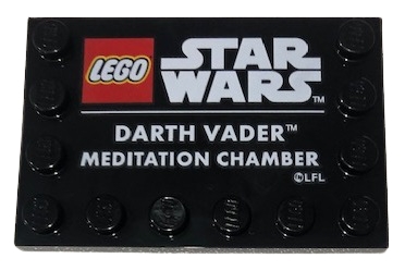 Tile, Modified 4 x 6 with Studs on Edges with Star Wars Logo and 'DARTH VADER MEDITATION CHAMBER' Pattern