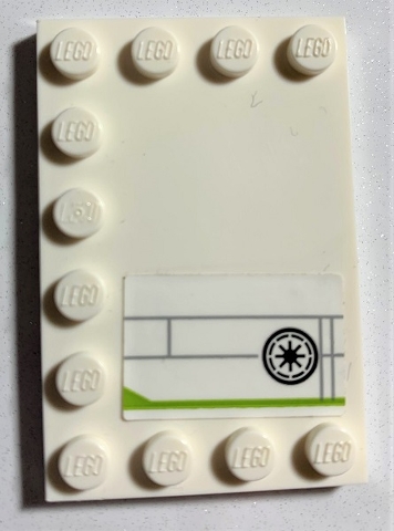 Tile, Modified 4 x 6 with Studs on Edges with SW Galactic Republic Logo, Lime Stripe, Light Bluish Gray Lines Pattern Model Right Side (Sticker) - Set 75191