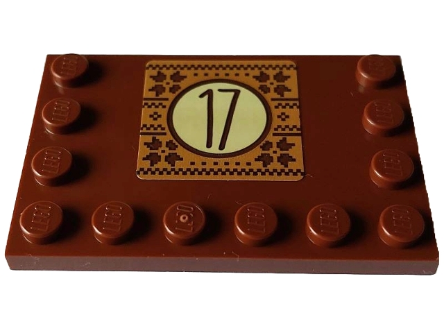 Tile, Modified 4 x 6 with Studs on Edges with Reddish Brown Number 17 in Tan Circle on Fair Isle Square Pattern (Sticker) - Set 4002023