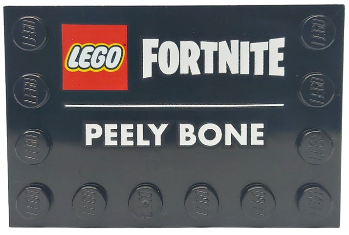 Tile, Modified 4 x 6 with Studs on Edges with LEGO Fortnite Logo and 'PEELY BONE' Pattern
