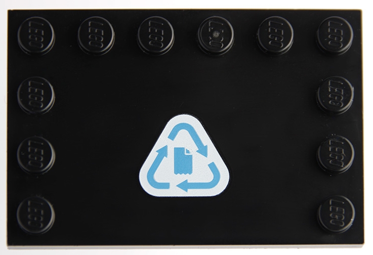 Tile, Modified 4 x 6 with Studs on Edges with Dark Azure Recycling Arrows and Paper on White Background Pattern