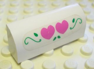 Slope, Curved 1 x 4 x 1 1/3 with Two Dark Pink Hearts and Green Leaves Pattern (Sticker) - Set 5890