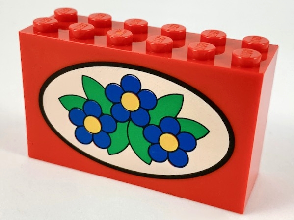 Brick 2 x 6 x 3 with Blue Flowers on White Oval Pattern