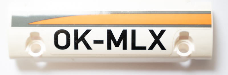 Technic, Panel Curved 11 x 3 with Black 'OK-MLX' and Dark Bluish Gray and Orange Stripes Pattern Model Left Side (Sticker) - Set 42052