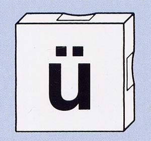 Duplo, Tile 2 x 2 with Black Lowercase Letter u with Diaeresis (ü) Pattern