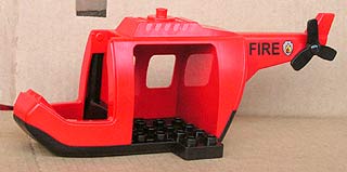 Duplo Helicopter Body Large with Black Base, Red Tail, Black Tail Rotor and Black 'FIRE' Pattern