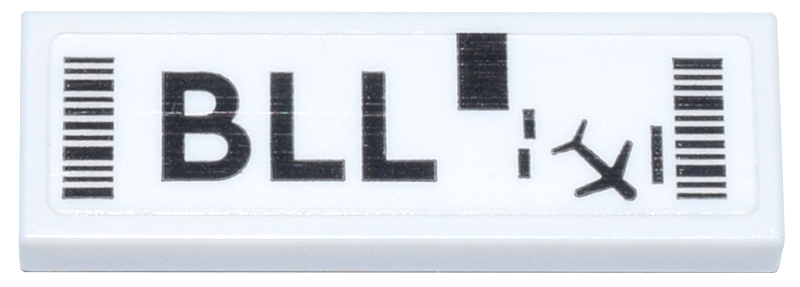 Tile 1 x 3 with Luggage Tag with Black 'BLL', Barcodes, Rectangle and Airplane Pattern (Sticker) - Set 40817