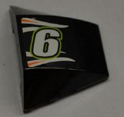 Wedge 4 x 3 Triple Curved No Studs with White Number 6 and White and Orange Flames on Black Background Pattern (Sticker) - Set 8125
