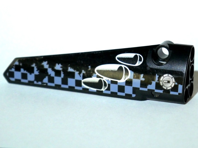 Technic, Panel Fairing # 6 Long Smooth, Side B with Vent Holes, Filler Cap and Worn Sand Blue and Black Checkered Pattern (Sticker) - Set 42002