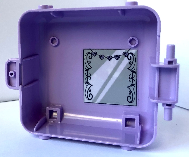 Container, Box 3 x 8 x 6 2/3 Half Front with Backpack with Ballet Shoes, Yellow Heart and Medium Lavender Bow and Mirror on Inside Pattern (Sticker) - Set 41670