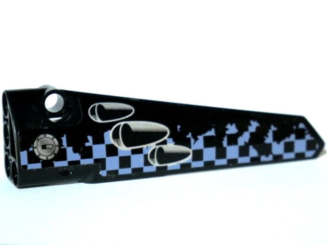 Technic, Panel Fairing # 5 Long Smooth, Side A with Vent Holes, Filler Cap and Worn Sand Blue and Black Checkered Pattern (Sticker) - Set 42002