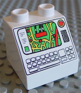 Duplo, Brick 2 x 2 x 1 1/2 Slope 45 with Map on Screen, Red Button, and Keyboard Pattern