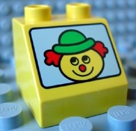 Duplo, Brick 2 x 2 x 1 1/2 Slope 45 with Clown Head on White Background Pattern