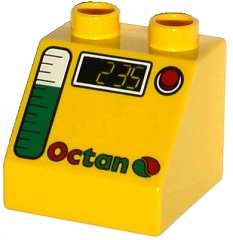 Duplo, Brick 2 x 2 x 1 1/2 Slope 45 with Octan Logo, Gas Gauge, and '2.35' Pattern