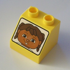Duplo, Brick 2 x 2 x 1 1/2 Slope 45 with Girl with Brown Pigtails Pattern
