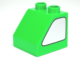 Duplo, Brick 2 x 2 x 1 1/2 Slope 45 with Metallic Silver Window Pattern on Both Sides