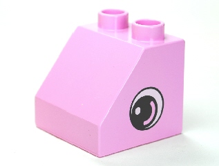Duplo, Brick 2 x 2 x 1 1/2 Slope 45 with Circled Black Eye with Arc and White Pupil Pattern on Both Sides