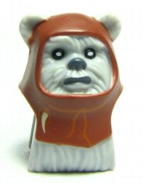 Minifigure, Head, Modified SW Ewok with Reddish Brown Hood with White Tooth Pattern