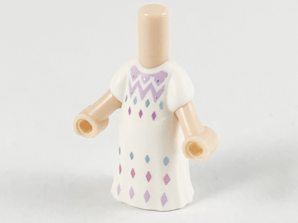 Micro Doll, Body with Molded White Dress and Printed Lavender, Metallic Light Blue, and Metallic Pink Diamonds, Zigzag Lines Pattern