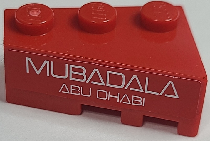 Wedge 3 x 2 Left with White 'MUBADALA ABU DHABI' on Red Background Pattern (Sticker) - Set 8157