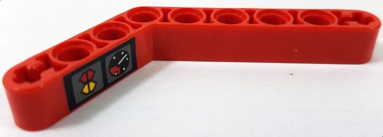 Technic, Liftarm, Modified Bent Thick 1 x 9 (6 - 4) with Black Gauge and Red and Yellow Buttons Pattern Model Right Side (Sticker) - Set 8443