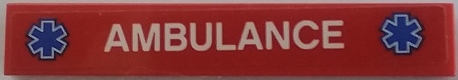 Tile 1 x 6 with White 'AMBULANCE' and Two Blue EMT Star of Life Logos on Red Background Pattern (Sticker) - Set 60179