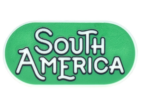 Tile, Round 2 x 4 Oval with Black Outline 'SOUTH AMERICA' on Green Background Pattern