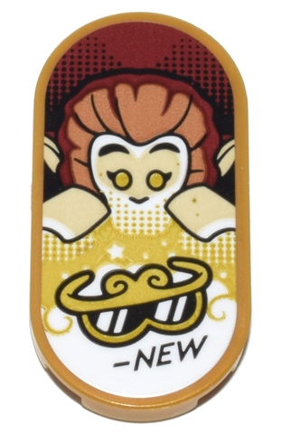 Tile, Round 2 x 4 Oval with Monkey King, Gold Sunglasses, and Black 'NEW' Pattern (Sticker) - Set 80036