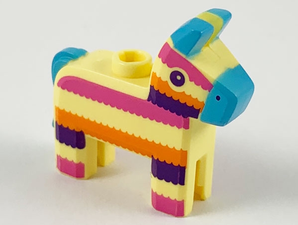 Minifigure, Utensil Piñata Horse with Medium Azure Ears, Nose and Tail, Dark Pink, Orange and Dark Purple Stripes Pattern