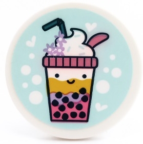 Tile, Round 3 x 3 with Bubble Tea with Cream, Straw, Flowers, Hearts and Dots on Light Aqua Background Pattern (Sticker) - Set 41450