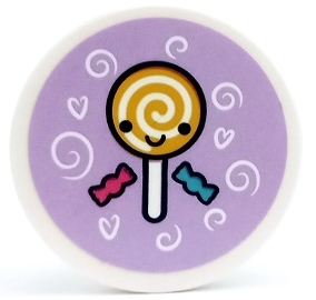 Tile, Round 3 x 3 with Candy, Lollipop, Swirls and Hearts on Lavender Background Pattern (Sticker) - Set 41450