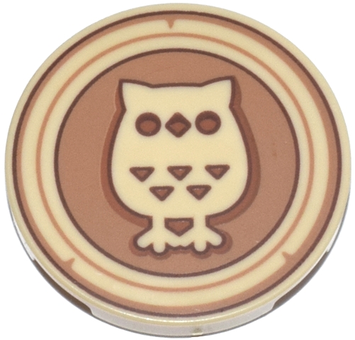 Tile, Round 3 x 3 with Owl and Dark Brown, Reddish Brown and Medium Nougat Circles Pattern