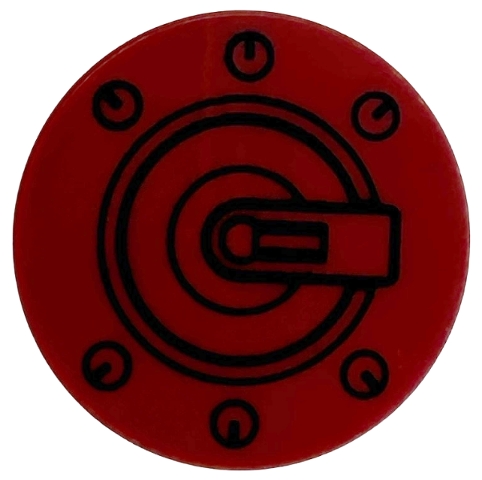 Tile, Round 3 x 3 with Black Mechanical Joint with Concentric Circles, Central Pivot Arm and Bolts Pattern
