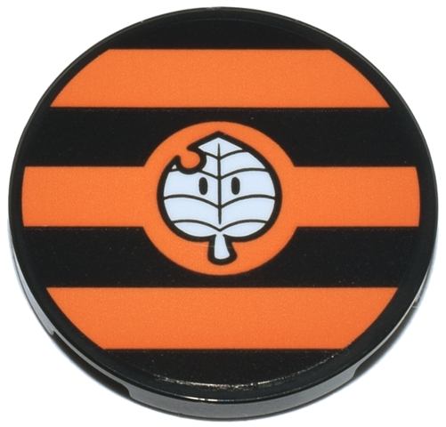 Tile, Round 3 x 3 with Wide Orange Stripes and White Leaf with Eyes and Notch (Mario Kart Super Leaf) Pattern (Sticker) - Set 72044