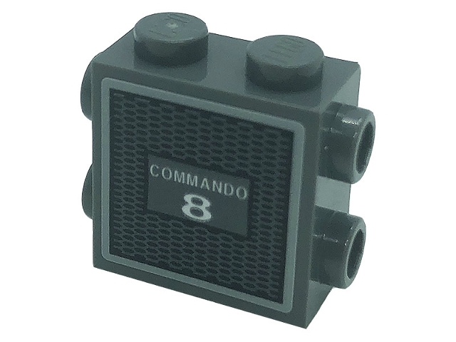 Brick, Modified 1 x 2 x 1 2/3 with Studs on Side and Ends with White 'COMMANDO 8' and Grille Pattern (Sticker) - Set 21328