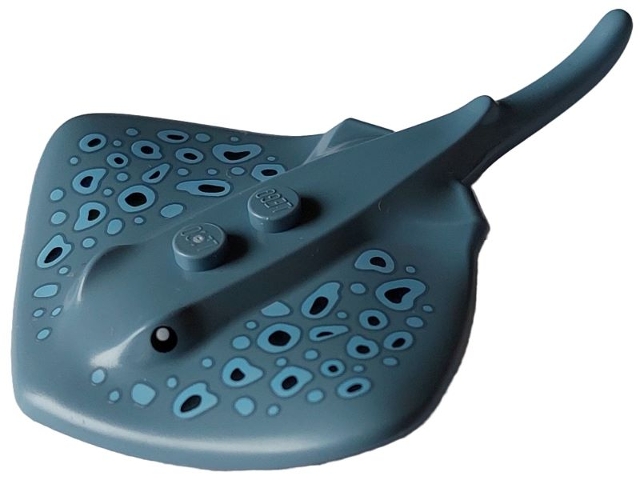 Ray / Stingray with 2 Studs with Black Eyes and Bright Light Blue with Black Spots Pattern