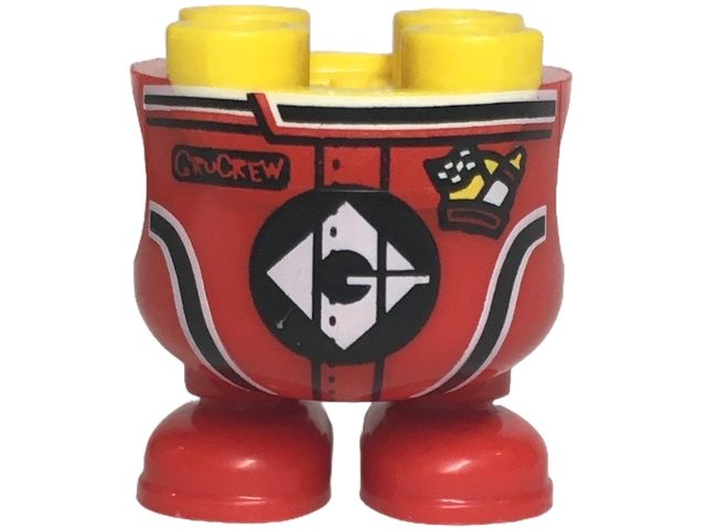 Lower Body, Rounded, Short Legs with Molded Red Racing Suit and Shoes and Printed Black Panels and Stripes with 'GruCrew', Gru and Pit Stop Logo with Flag Pattern