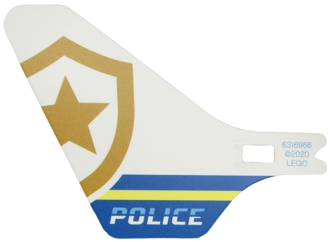 Plastic Tail for Flying Helicopter with 'POLICE' and Partial Police Gold Star Badge Logo Pattern on Both Sides