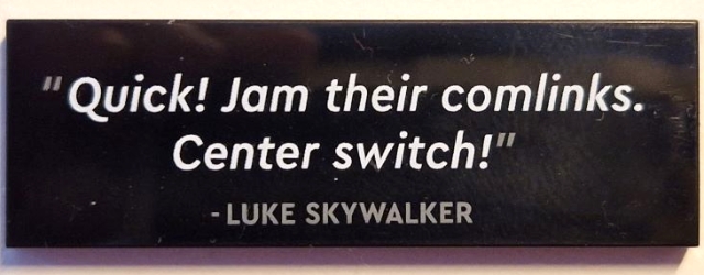 Tile 2 x 6 with '"Quick! Jam their comlinks. Center switch!" - LUKE SKYWALKER' Pattern