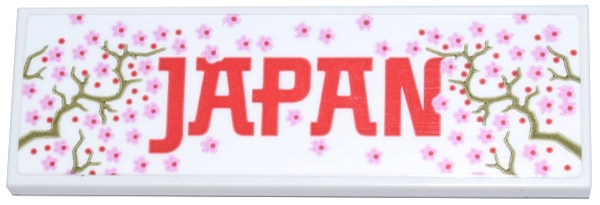 Tile 2 x 6 with Bright Pink Cherry Blossoms, Olive Green Branches, and Red 'JAPAN' Pattern (Sticker) - Set 40713