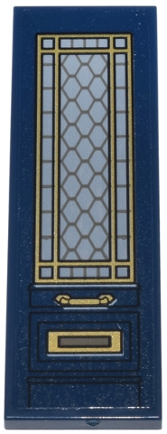 Tile 2 x 6 with Door, Light Bluish Gray Lattice Window with Gold Frame, Handle and Mail Slot Pattern Model Left Side (Sticker) - Set 76218