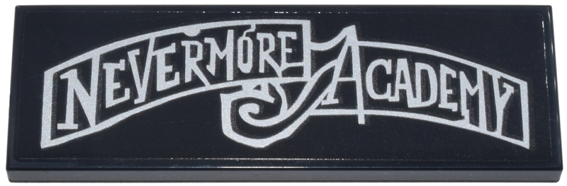 Tile 2 x 6 with Silver 'NEVERMORE ACADEMY' Banner Pattern (Sticker) - Set 76780