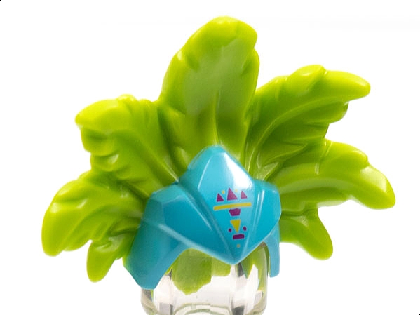 Minifigure, Headgear Hat, Showgirl with Feathers with Medium Azure Front, Dark Purple and Yellow Symbol Pattern