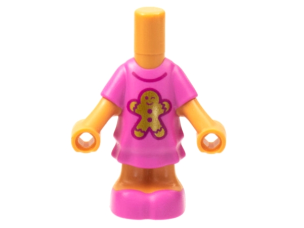 Micro Doll, Body with Molded Dark Pink Short Layered Dress and Shoes and Printed Gold Gingerbread Man and Magenta Collar Pattern