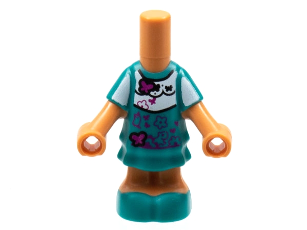 Micro Doll, Body with Molded Dark Turquoise Short Layered Dress and Shoes and Printed White Shirt with Black and Magenta Butterflies and Flowers Pattern