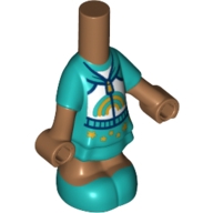Micro Doll, Body with Molded Dark Turquoise Short Layered Dress and Shoes and Printed White Hoodie with Gold Zipper and Rainbow Pattern
