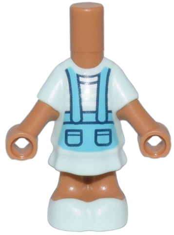 Micro Doll, Body with Molded Light Aqua Short Layered Dress and Shoes and Printed Medium Azure Pinafore with Pockets Pattern