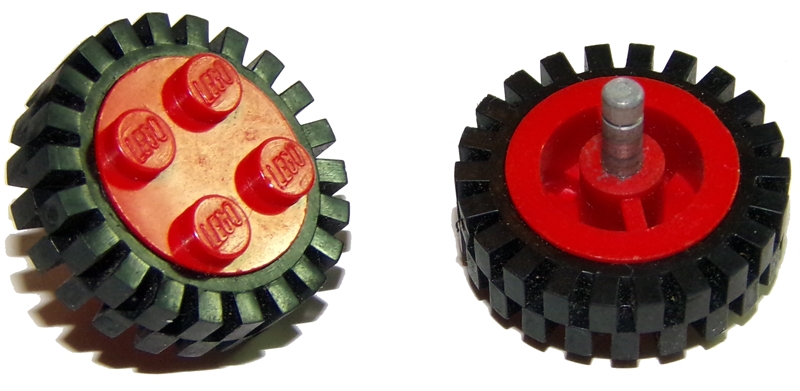 Wheel Classic 4 Studs and Axle with Black Tire 24mm D. x 8mm Offset Tread - Interior Ridges (7039 / 3483)