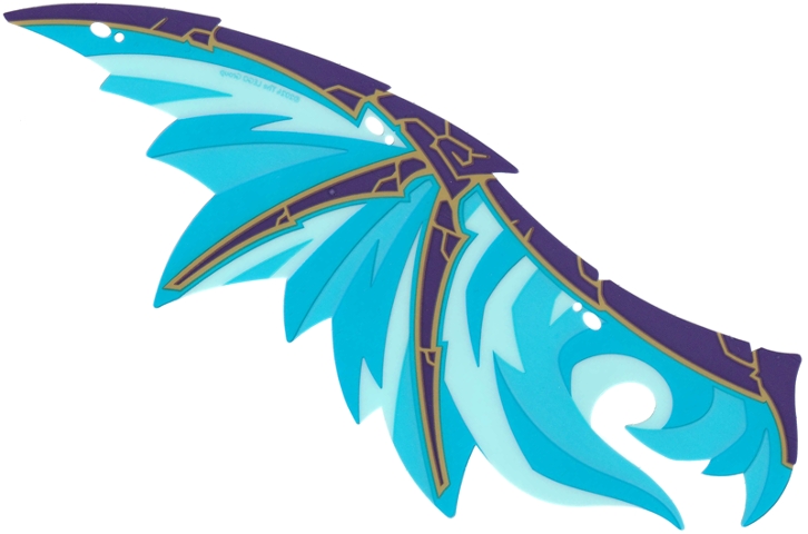 Plastic Part for Set 71836 - Dragon Wing with Dark Purple Spines with Gold Outline, Light Aqua, Medium Azure and Dark Azure Membranes Pattern